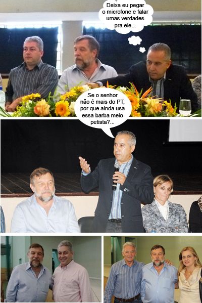 Os clics maiores são de ontem, quando o vice-governador Flávio Arns esteve em Goioerê para um evento no Núcleo Regional de Educação. Por isso ele aparece ao lado do prefeito Beto Costa (Goioerê) e do deputado Douglas Fabrício. Já as fotos menores são de Campo Mourão, onde Arns visitou um dia antes, para o mesmo motivo. Como dá pra ver, tanto Douglas quanto Tureck e a vice-prefeita Regina Dubay parecem disputar pra ver quem dá o abraço mais acalorado em Arns...