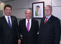 Olha só quem foi fazer uma visitinha ao mourãoense Erickson Chandoha, na Secretaria de Desenvolvimento Agropecuário e Cooperativismo, no Ministério da Agricultura: o ex-governador Orlando Pessuti, que agora é conselheiro do BNDES, e o senador Sérgio Souza (aquele, que era suplente da Gleisi Hoffmann). Eles falaram de programas e projetos para a agricutura paranaense. E viva a Dilma!...