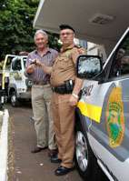 Teve entrega de viaturas para o 11º BPM, ontem à tarde, em frente à prefeitura de Campo Mourão. Uma Ecosport será usada como rádio-patrulha e um guincho para atender os casos de acidentes. O comandante do batalhão, tenente-coronel Geraldo Moliani, disse que se o novo guincho atender bem a demanda, o guincho velho pode ir pra alguma cidade da região. E isso pra levar carro apreendido é uma mão na roda...