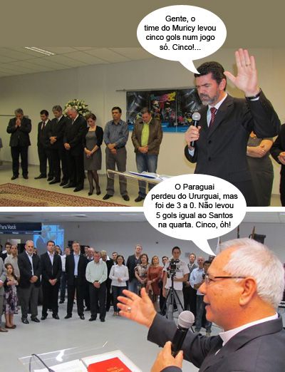 Os cliques são do I-Tribuna, o portal de notícias da Tribuna do Interior, e mostram novos momentos da inauguração da nova agência da Caixa Econômica em Campo Mourão, na quinta-feira. O pastor André Portes e o bispo d. Javier Paredes (paraguaio de nascimento) fizeram suas orações durante o evento. Mas que fique claro: quem falou de futebol foi só o deputado Douglas Fabrício. Disse que iria falar pouco porque o seu Santos tinha perdido por 5 a 4 para o Flamengo. Hummmm...