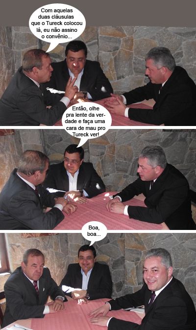 Por falar em Santa Casa, a nota publicada anteontem pela instituição gerou uma polemicazinha extra. A matéria fala do apoio de membros do Conselho Administrativo ao presidente Elmo Linhares e é ilustrada com uma foto da posse da diretoria. O problema é que tem gente que aparece na foto que apóia a prefeitura nessa briga, inclusive CC do prefeito. Ai-aiai-aiai! Agora, até explicar que focinho de porco não é tomada...