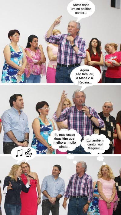 Os clics são do Celebra, onde aconteceu ontem o encerramento das atividades anuais dos clubes de mães. O prefeito Nelson Tureck não só cantou, como fez a vice-prefeita Regina Dubay e a deputada-filha Marla Tureck cantarem também. As fotos também mostram a secretária Sônia Singer (Cultura), a vereadora Nelita Piacetnini, o deputado Fernando Giacobo e o reverendo Richard Dickerson. E viva a cantoria!...