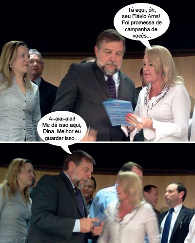 Os clics são do evento que o governo do Estado realizou durante a semana, para liberação de recursos para reformas e ampliações de escolas. A prefeita Dina Cardoso (Farol) aproveitou para entregar ao governador em exercício e secretário da Educação, Flávio Arns, o convite para a Festa do Pernil à Pururuca, que acontece no mês que vem. Portanto, que fique claro: Não tem nada a ver com os balõezinhos...