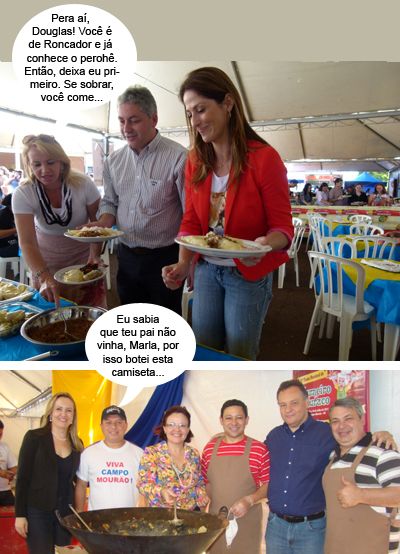 Os cliques são de ontem, em Ubiratã, na 3ª Comcam Fest. O deputado Douglas Fabrício e a esposa Sandra almoçaram o perohê ao molho na barraca de Roncador, junto com a prefeita Dina Cardoso (Farol). Já a deputada Marla Tureck foi de carneiro no buraco, na barraca de Campo Mourão. Na foto, ficou ao lado de Toninho Reis, Luciana D’Alécio, Carlos Rodrigues, Fábio D’Alécio e Peteleco.