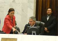 Boca Santa falou ontem que o deputado Douglas Fabrício deu uma “escapadinha” da Assembleia pra acompanhar evento do governo, mas a assessoria dele lembra que isso foi pela manhã, quando não há sessão em andamento. À tarde, aliás, o presidente Valdir Rossoni se atrasou e Douglas teve que presidir boa parte dos trabalhos. Olha ele aí, no centro da mesa diretora. Ah, assim tem que ganhar um extra no fim do mês, hein?...
