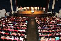Teatro Municipal lotadérrimo ontem à tarde. E não foi pra nenhum espetáculo com elenco global, não. Nem pra show com cantor famoso. Foi a adesão de Campo Mourão ao “Minha casa, minha vida 2”. A gerente da Caixa Econômica, Célia Furlaneto, lembrou que há dois anos, na adesão ao MCMV 1, o teatro também lotou e que aquelas pessoas agora já estão em suas casas próprias. Viu! Vá ao teatro e ganhe uma casa...
