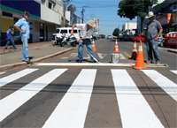A prefeitura está realizando serviços de reforço e manutenção na sinalização horizontal na área central de Campo Mourão. Os serviços compreendem pinturas de faixas e áreas de estacionamento em diagonal. Os investimentos somam R$ 35 mil. Os serviços vão da rua Santa Cruz à Roberto Brzezinski, entre as avenidas Goioerê e José Custódio. Agora é só avisar aos motoristas que não são só as faixas do calçadão que devem ser respeitadas...
