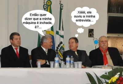 O clic é de sexta-feira, durante a sessão solene da Câmara que entregou títulos ao CTG e ao tradicionalista Dirceu de Mello. Estão na foto o vereador Ademir Pezão, o prefeito Nelson Tureck, o presidente Eraldo Teodoro e o homenageado. Nesse mesmo dia, Eraldo disse ao “Jornal 100” (Musical FM) que se fosse prefeito enxugaria a máquina da prefeitura, reduzindo as secretárias pela metade e valorizando servidores de carreira. Viu, Tureck?...