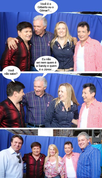 Os clics são de ontem, nos camarins da 9ª Festa do Pernil à Pururuca, em Farol, um pouco antes do show com a dupla Gilberto & Gilmar. As fotos mostram a sessão tietagem. Passaram por lá os prefeitos Nelson Tureck e Dina Cardoso (Farol), os deputados Douglas Fabrício e Marla Tureck, além do presidente do Águas Paraná, Márcio Nunes. E o que é que os cantores acharam de tudo isso? Ah, “tá ruim, mas tá bão”...