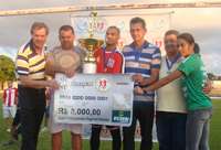 Com gols de Fernando, Maurício e Juninho, o Luiziana venceu o Engenheiro Beltrão, ontem, por 3 a 1, e sagrou-se campeão do Amadorzão da Liga de Goioerê (foto: Nelson Silva). E olha que o jogo foi na casa do adversário. A primeira partida da decisão, no domingo anterior, tinha empatado em 1 a 1. Com o título, Luiziana faturou um prêmio de R$ 8 mil. Beltrão levou R$ 4 mil. Então, viva Luiziana!...
