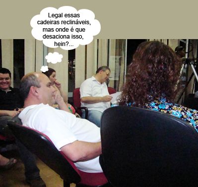 O clic é de ontem à noite, na Casa da Cultura, onde aconteceu a audiência pública promovida pela Câmara de Vereadores para debater o Plano Diretor de Campo Mourão. É no mesmo local onde estão sendo feitas as sessões do legislativo. O ex-secretário Paulo Davidoff esteve por lá e sentiu na pela o gostinho do mau estado do “plenário”, que tem parte das cadeiras quebradas. Algumas ficaram reclináveis. Pena que não dá pra voltar à posição normal. Ah, ninguém paga pra entrar mesmo...
