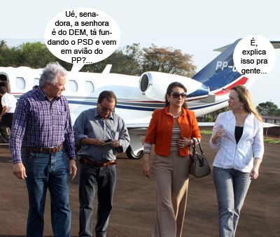 No discurso de ontem, Nelson Tureck disse que, no PSD, vai ajudar o governador Beto Richa e a presidente Dilma Rousseff. Mas esse negócio de ser aliado do governo petista não se repediu na fala da senadora Katia Abreu, não. Ela disse que o partido não fará oposição como quem está demolindo uma construção, mas deixou claro que o PSD não será “adesista” e será base de apoio apenas de governo que ajudar a eleger. Deuzolivre!...