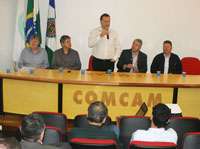 Nove prefeitos da região participaram ontem de uma reunião na Comcam que discutiu projetos e a viabilização de recursos junto aos governos federal e estadual, além no cadastro no Sistema de Gestão de Convênios, Contratos e Repasses. Foram convidados o superintendente da Caixa, Sérgio Scramin, e o coordenador do Paraná Cidade, José Gaspar Falkemback. O deputado Douglas Fabrício esteve por lá.