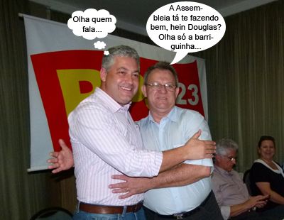 O clic é do congresso municipal que o PPS realizou quinta-feira em Campo Mourão, quando o deputado estadual Douglas Fabrício assumiu a presidência do diretório municipal, em substituição ao chefe do núcleo regional da Seab, Edson Battilani. Detalhe: Battilani deve ser candidato a vereador, já Douglas jura que não disputa a prefeitura. Hummm...