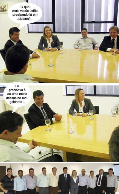 A caranava de Luiziana que esteve esta semana em Curitiba também conseguiu uma audiência com o governador Beto Richa. A deputada Marla Tureck e o presidente da Codapar, Tino Staniszewski, acompanharam o prefeito Cláudio Pol, o vice Wilson Tureck e os vereadores Armando Rufino, Joaquim Pepineli, Noé de Oliveira e José Borsato. Agora imagina o tamanho da listinha de pedidos...