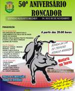 Definida a programação de aniversário de Roncador, que completará 50 anos no próximo dia 5. Serão três dias de festas no estádio municipal, tudo com entrada franca. Na abertura, dia 4, tem rodeio, show musical e queima de fogos. No sábado tem desfile (8h30). No domingo tem cavalgada (9h) e almoço (12h). O rodeio e os shows serão todas as noites. No encerramento tem Minuano. E viva Roncador!...