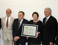 A Câmara de Campo Mourão fez sessão solene ontem à noite para a entrega do prêmio “Município Modelo” ao casal Estefano e Assumpta Domanski. A iniciativa partiu do vereador José Pochpaski, que entregou a homenagem junto com o prefeito Nelson Tureck. Apenas outros quatro vereadores estiveram por lá – Edoel Rocha, Helton Borges, Nelita Piacentini e Sidnei Jardim. A vice Regina Dubay também foi. Ô dureza...
