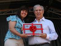 O desfile pelos 50 anos de Campina da Lagoa incluiu uma homenagem aos ex-prefeitos da cidade. Olha aí a prefeita Celia Cabrera fazendo a entrega ao ex-prefeito Homero Vicente de Paula. O ex-prefeito Joaquim Antonio de Lima, mesmo tendo feito campanha contra a atual prefeita, também esteve por lá. Já o ex-prefeito Paulo Gonçalves, que perdeu a eleição para Célia, não apareceu, não. Por que será, hein?...