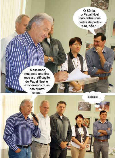 Os clic são de ontem, no gabinete do prefeito Nelson Tureck, quando foi assinado convênio entre a prefeitura e a Acicam para a realização da campanha “Campo Mourão Cidade Natal”. Também participam o CDL e o Sindicato Empresarial do Comércio. O Papai Noel chega no próximo dia 3. Aparecem na foto, além do prefeito, o presidente da Acicam, Nelson Botega; o presidente do Observatório Social, Eloi Bonkoski; a secretária Sonia Singer (Cultura) e o vereador Edoel Rocha.