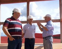 O prefeito Fábio D’Alécio foi fazer uma visitinha às obras do abatedouro de aves que está sendo construído na cidade. Trata-se da Unitá, formada pela parceria de três cooperativas – Coagru, Cooperflora e Copacol. A obra está nos “finalmentes”, com um investimento R$ 100 milhões. Vai começar abatendo 160 mil frangos por dia e gerando 1,8 mil empregos diretos. É a “Frangobras de Ubiratã”. Mas sem polêmicas...