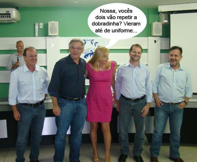 O clic é de ontem à noite, quando cinco pré-candidatos a prefeito atenderam ao convite da Acicam e foram acompanhar a reunião da entidade. Estão aí Luiz Alfredo (PT do B), Nery Thomé (DEM), Regina Dubay (PR), Osni Menezes (PSC) e Tauillo Tezelli (PPS). Um sexto prefeitável – José Turozi (PV) – estava em Brasília e justificou a ausência. A pedido do presidente Nelson Botega, os pré-candidatos fizeram uma foto juntos. Mas no fundo, no fundo, é igual Big Brother: um querendo eliminar o outro...