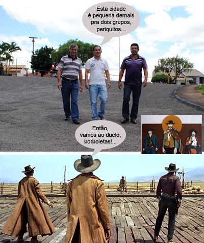 O clic é de Araruna, onde a prefeitura iniciou recapeamento das ruas Ceará e Bahia, no Jardim Esperança, próximo ao Ginásio de Esportes Zé Quatorze. O prefeito Mino Bonato, o vice Renato Toaldo e o presidente da Câmara, Renê Vieira Duarte, foram por lá dar olhadinha de perto. Não parece cena do filme “Três homens em conflito”? Detalhe: na produção hollywoodiana, um era “o bom”, um era o “mau” e o outro “o feio”. Hummmm...