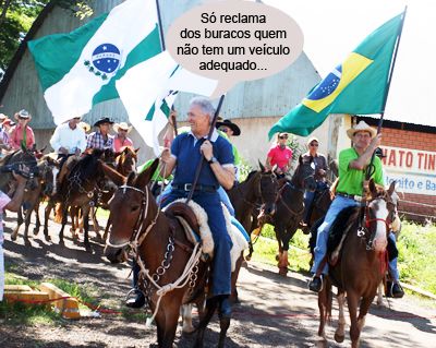 O clic é de domingo, durante a cavalgada que encerrou as atividades de 2011 da Associação dos Cavaleiros e Amazonas Mourãoenses. Mais de 500 pessoas de toda a região percorreram um trecho de 15 km, com “largada” no Parque de Exposições. O prefeito Nelson Tureck conduziu a bandeira do município, juntamente com o vereador Edoel Rocha e o coordenador da cavalgada, Jorge Oliveira. E cavalo não vaia, viu!...