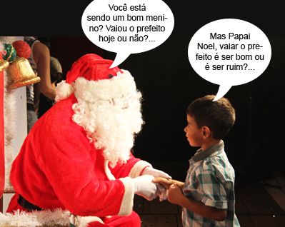 Olha aí mais um clic da chegada do Papai Noel à praça São José, domingo à noite. Depois de sair de um telão e entrar para o “mundo real”, o “bom velhinho” atendeu a criançada que estava por lá. Como diriam os políticos, “manteve audiências” com todas elas. Apesar de só distribuir uma balinha por enquanto, ninguém vaiou o Papai Noel. Viu, prefeito?...