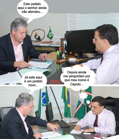 Os cliques forma feitos durante a semana, em Curitiba. O deputado Douglas Fabrício aproveitou que a Assembleia Legislativa não teve sessões e agendeu uma série de visitas a secretários de Estado. Nas fotos, ele está com Michele Caputo, da Saúde. Sabe como é que é, tem que ver como é que andam os pedidos já feitos e, pra não perder o costume, apresentar algumas reivindicações novas. Coisa básica. Os secretários nem precisam ficar “pê” da vida...