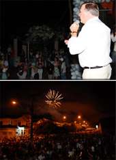 A prefeitura de Mamborê também promoveu réveillon popular em praça pública. Teve show com a banda Marca Registrada e foguetório, além de muita gente por lá. O prefeito Ricardo Radomski compareceu e aproveitou pra anunciar os vencedores do concurso de decoração natalina. O professor Jurandir Messias dos Santos faturou o prêmio principal, uma TV de 32 polegadas. Olha aí, ano novo, tevê nova...