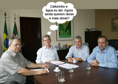 ENQUANTO ISSO, NA AUDIÊNCIA NA CAPITAL... O clic é de Curitiba, quinta-feira, quando o deputado Douglas Fabrício, juntamente com o chefe regional da Seab, Edson Battilani, e o prefeito Cláudio Gotardo (Boa Esperança) tiveram uma audiência com o secretário de Estado Norberto Ortigara (Agricultura). Na pauta, reivindicações da região para o governo. E todo mundo sério, vu só!...