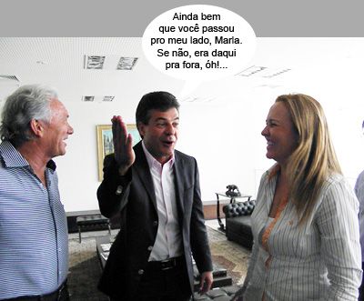 O clic é do início do mês, quando o prefeito Nelson Tureck e a deputada-filha Marla Tureck fizeram a primeira visita ao novo gabinete do governador Beto Richa. Novo porque o Palácio Iguaçu foi reaberto após cinco anos de reformas. Richa passou o primeiro ano de governo despachando no Palácio das Araucárias. Ah, que palaciaiada, hein?...