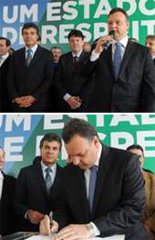 O governador Beto Richa assinou ontem os convênios para implantação de sistemas de abastecimento de água em 99 comunidades rurais de 96 municípios, num investimento de R$ 58 milhões. Desse total, estão 18 comunidades de 15 cidades da região. Segundo o governo, foram escolhidas localidades com Índice de Desenvolvimento Humano abaixo da média do Estado. Ai-aiai-aiai! Assim dá uma vergonha na gente...