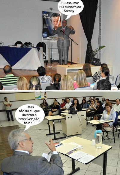 Os cliques são da faculdade Integrado, que recebeu na semana passada Almir Pazzianotto, que foi ministro do Tribunal Superior do Trabalho e ministro do Trabalho no governo Sarney (85/89). Ele proferiu palestras na sexta-feira à noite e no sábado pela manhã, em eventos abertos à comunidade. Só não vá se confundir. O ministro do Trabalho que falou em “imexível” foi Rogério Magri, no governo Collor.