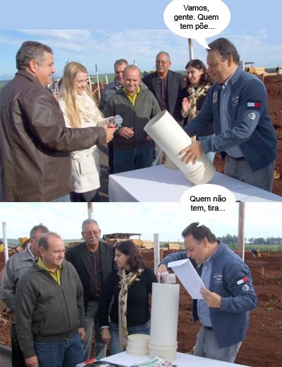 Os cliques são de Ubiratã, onde aconteceu segunda-feira o lançamento da pedra fundamental da escola municipal Professora Lucineia Ricardo Braciforte. Segundo o prefeito Fábio D’Alécio, será a maior obra de sua administração. Os trabalhos já começaram. A pedra fundamental incluiu uma cápsula do tempo, onde foram colocados jornais, fotos e livros, que será serão reabertos daqui a 50 anos. Quem viver verá...