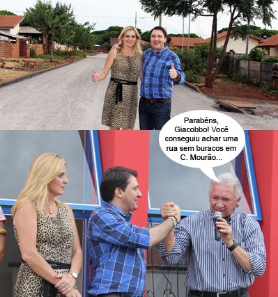 ENQUANTO ISSO, NA VISITINHA DO DEPUTADO... Além de participar da inauguração do Centro de Iniciação Profissional, o deputado federal Fernando Giacobbo deu uma passadinha pelos conjuntos José Richa (Santa Cruz) e São Francisco de Assis (Lar Paraná), onde foi feito asfalto na faixa para os moradores. O investimento de R$ 897 mil veio do governo federal com uma mãozinha do parlamentar. A vice-prefeita Regina Dubay acompanhou a visita. E ia perder a chance, né?...