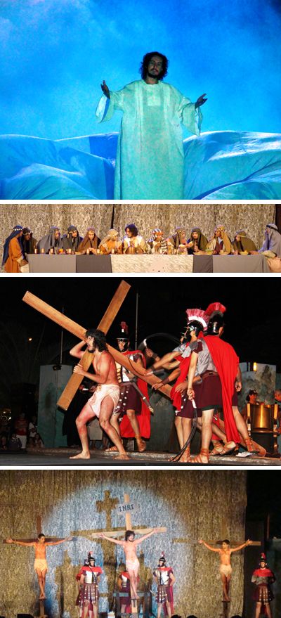 ENQUANTO ISSO, NO AUTO DA PAIXÃO... Os cliques são do Auto da Paixão de Cristo encenado ontem à noite na praça São José. Eles mostram quatro cenas – a ressurreição, a última ceia, a via crucis e a crucificação de Jesus. E cadê o balãozinho? Ah, sem balãozinho hoje, pra ninguém dizer que a gente tá cometendo pecado em plena Semana Santa...