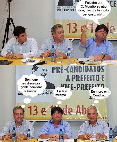 Os cliques são de Curitiba, onde o PPS realizou no final de semana curso para pré-candidatos a prefeito e a vice-prefeito. Os deputados Douglas Fabrício e Rubens Bueno estiveram por lá. O pré-prefeitável Tauillo Tezelli também. Agora, olha só quem foi um dos professores: Marcelo Madureira, do “Casseta & Planeta”. Ele foi militante do PCB, o partido-pai do PPS. E já fez críticas ao ex-presidente Lula. Ah, aí o PPS goooooostcha!...