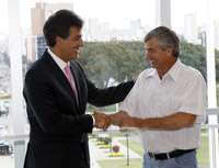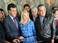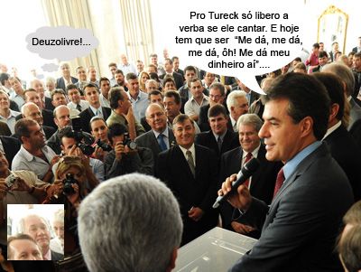 ENQUANTO ISSO, NO PALÁCIO IGUAÇU... O clic é de ontem, no Palácio Iguaçu, quando o governador Beto Richa liberou R$ 112 milhões para 121 cidades do Estado, incluindo aí aqueles famosos R$ 4 milhões financiados por Campo Mourão. O prefeito Nelson Tureck esteve por lá, só que, desta vez, com muita gente, não deu pra fazer cantoria, não. No mais, tomara que essa verba aí não lembre música do Paulinho da Viola: “Dinheiro na mão é vendaval, é vendaval...