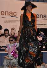 Alunas do curso de estilismo de moda do Senac realizaram esta semana um desfile com roupas produzidas somente com materiais recicláveis. Foram usados jornais, revistas, bexigas, sacos de lixo, garrafas pet e tampinhas de garrafa. Tudo isso dentro das disciplinas de responsabilidade social, moda e marketing de modo. Na foto, o vestido é feito de sacos de lixo. Ficou até bonito, mas é bom passar longe dos caminhões da Seleta...