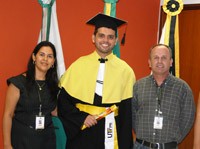 O campus de Campo Mourão da UTFPR formou ontem o seu primeiro engenheiro. Trata-se do estudante de engenharia ambiental Felipe Pereira de Albuquerque. A colação de grau da turma vai acontecer somente em agosto, mas ele passou em concurso no Ceará e precisou do diploma para assumir o posto. A solenidade em caráter especial é prevista no regulamento da UTFPR. Viu só, formando bom não se mistura...