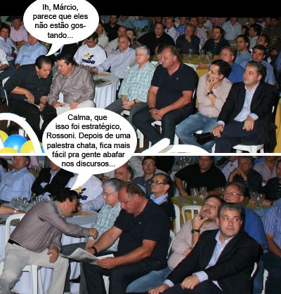 Os cliques são do encontro regional do PSDB, que aconteceu sábado em Campo Mourão. E parece que a palestra do presidente do Coritiba, Vilson Ribeiro de Andrade, não animou muito a turma da primeira fila. Olha só a cara do ex-prefeito Tauillo Tezelli! E o Cezar Bronzel, que preferiu ler jornal? Os deputados Valdir Rossoni e Douglas Fabrício também não escondem o desânimo. Ah, deve ser o cansaço. Ou não torcem pelo Coxa...