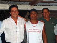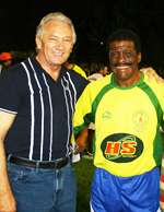 Com a presença em Araruna de uma seleção de antigos astros do futebol brasileiro, o prefeito Nelson Tuerck não se agüentou, não. Foi pra lá ver de perto. Isso na sexta-feira à noite, com chuva e tudo. Olha o prefeito aí, junto com o lateral Zé Maria, do Corinthians e da Seleção Brasileira. Já dá até pra imaginar Tureck contando seus tempos de volante do Luiziana. Ah, aquela Copa de 78 podia ter outra história, hein?...
