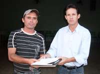 O domingo foi de eleição na Associação de Moradores do Jardim Pio XII. Eleição com chapa única, diga-se de passagem, mas teve. Noventa moradores do bairro apareceram pra votar e 89 deram “sim” à chapa encabeçada por Marco Antonio de Oliveira. Olha ele aí, recebendo a papelada do ex-presidente Antonio Machado. Agora cá pra nós: esse único voto contra foi só pra não dar a “burrice” da unanimidade, né?...