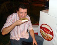 A sessão da Câmara de Campo Mourão, ontem à noite, terminou em pizza. Pelo menos pro vereador Helton Borges. Assim que terminou a reunião, ele foi experimentar as minipizzas vendidas em frente ao Teatro Municipal. Helton tava todo faceiro porque foi aprovado o projeto de lei dele que permite que, à noite, as mulheres não precisem esperar a chegada do ponto para descerem das circulares. E dê-lhe cordinha!...