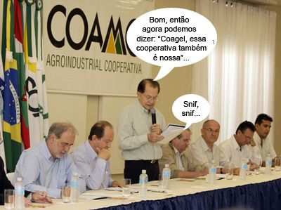 O presidente da Coagel, Osmar Pomini, disse que a incorporação aconteceu num dia histórico. “Foi uma decisão importante e inteligente por parte da Coamo e resolverá os problemas dos associados da Coagel”, frisou. A cooperativa goioerense tinha 38 anos, sendo três anos já arrendados à “irmã mais velha”. Além dos quase 2 mil cooperados, ela passa para a Coamo 10 entrepostos e uma fiação de algodão. E sem lágrimas, hein gente!...