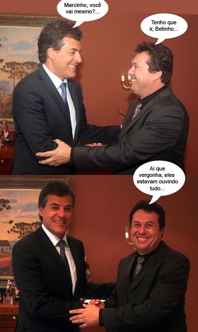 Os cliques foram feitos às 16h55 desta quarta-feira e mostram o mourãoense Marcio Nunes se despedindo do governador Beto Richa na condição de presidente do Instituto das Águas. Logo em seguida ele protocolou na Casa Civil o pedido de demissão para que, desincompatibilizado, possa seguir como pré-candidato a prefeito de Campo Mourão pelo PSDB. As convenções têm que ser realizadas até o próximo dia 30.