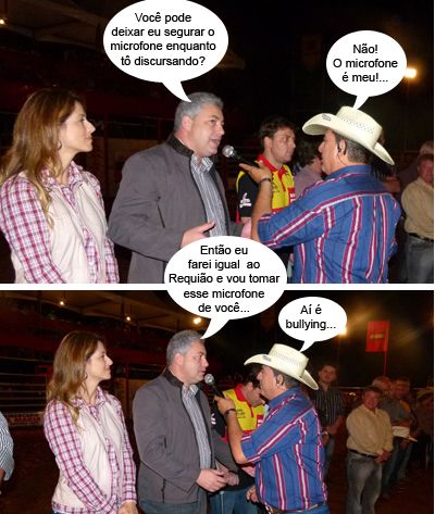 Depois da Expocenter, em Quarto Centenário, sábado foi a vez do deputado Douglas FabrÍcio dar uma passadinha em Moreira Sales, onde acontecia a Expo-Sales. O convite partiu do prefeito Luiz Volpato. Apesar do tempo chuvoso, muita gente foi prestigiar o evento. E Douglas discursou como se estivesse sendo entrevistado pelo locutor de rodeio.