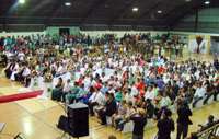 O ginásio da Vila Urupês ficou lotado neste final de semana. Só que não foi por nenhuma atividade esportiva, não. Foi para o casamento coletivo promovido pelo programa Justiça no Bairro/Sesc Cidadão. Ao todo, 149 casais disseram o “sim”. Os noivos lotaram a quadra e os convidados superlataram as arquibancadas. Legal. Agora, cá pra nós: esse programa faz divórcio coletivo depois?...