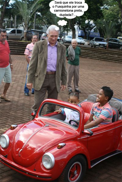 O clic é de domingo, na praça São José, onde aconteceu o 8º Encontro Mourãoense de Fuscas. Cerca de 60 “VW Sedan” participar do evento. O prefeito Nelson Tureck deu um passada por lá e ficou impressionado com o Fusquinha infantil que apareceu por lá, com motor a gasolina e tudo. Olha aí, se fosse todo mundo desse tamanho, nem precisava Zona Azul...